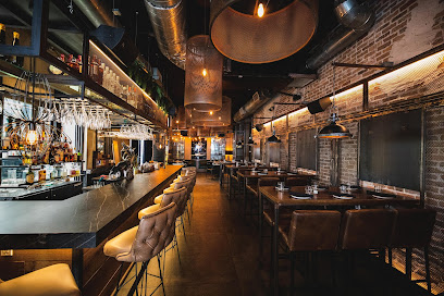 Fried chicken, upscale pub grub & cocktails are showcased in a vibrant, modern setting with music.